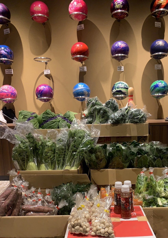 景品は、武蔵野市内の農家さんが丹精込めて作った新鮮な旬のお野菜。ボウリングと採れたて野菜のコラボは参加者から大好評でした。