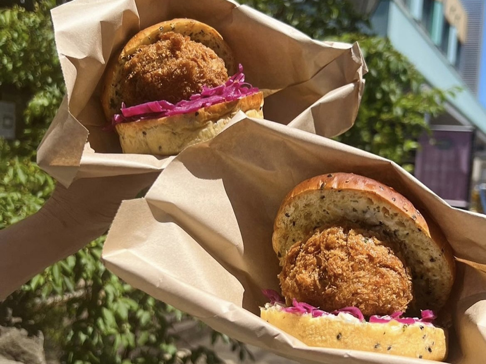 さとう×LIBERTÉコラボ 元祖丸メンチカツバーガー