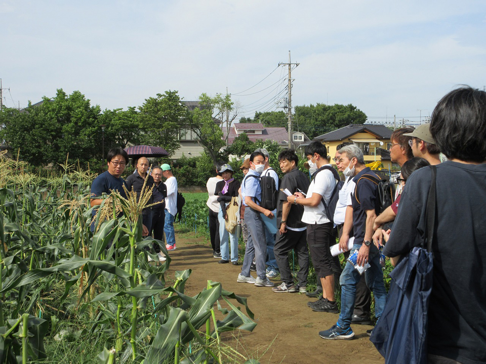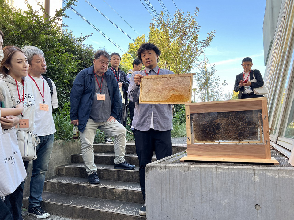 市内でハチミツ採取を行っている生産者と市内農業者を訪問し、成蹊小学校敷地内設置の蜂の巣箱を見学したり、畑を見学し、生産している農産物についてご説明いただきました。