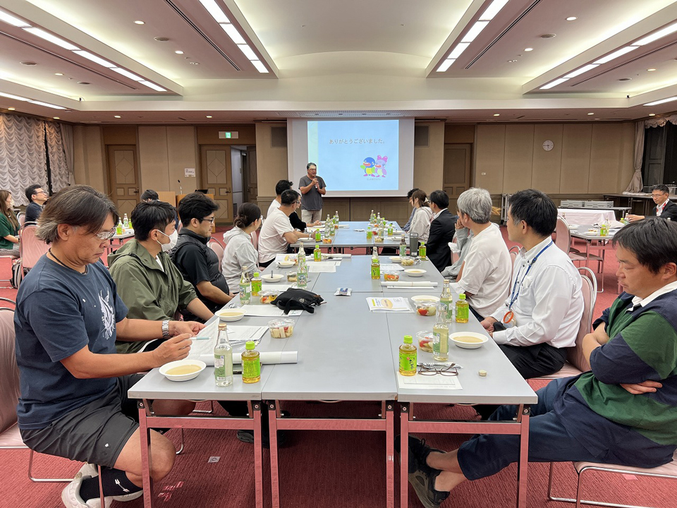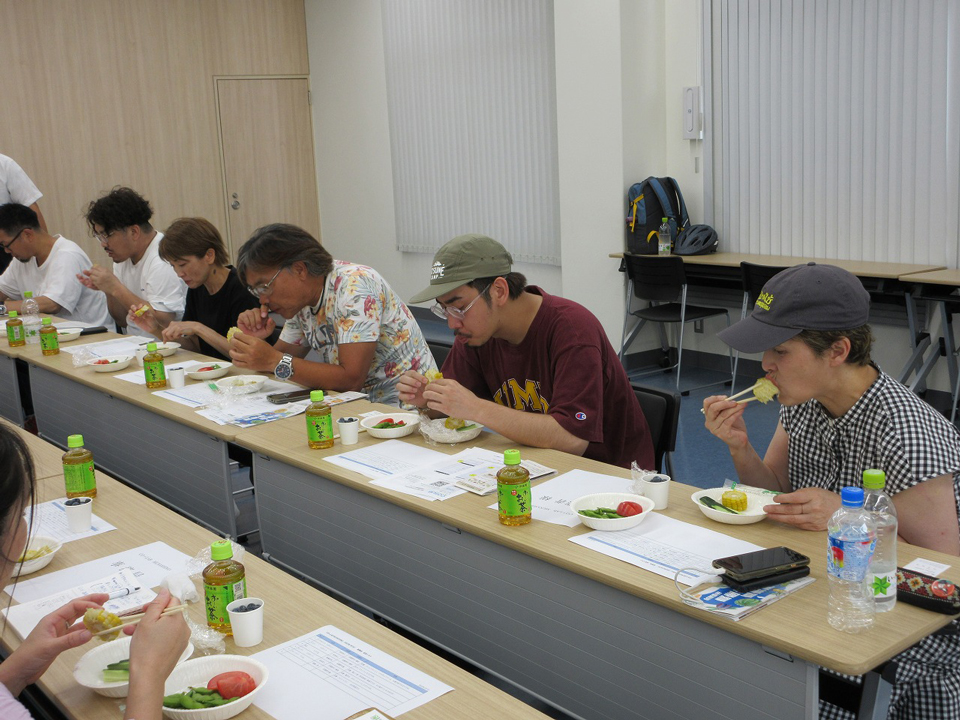 成蹊大学のホールにて、参加事業者に考案いただいた旬の農産物を使ったコラボメニューの試食会を行いました。